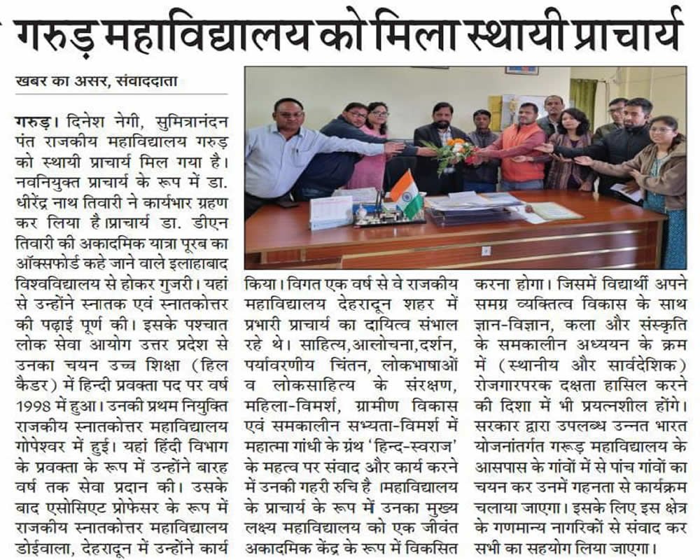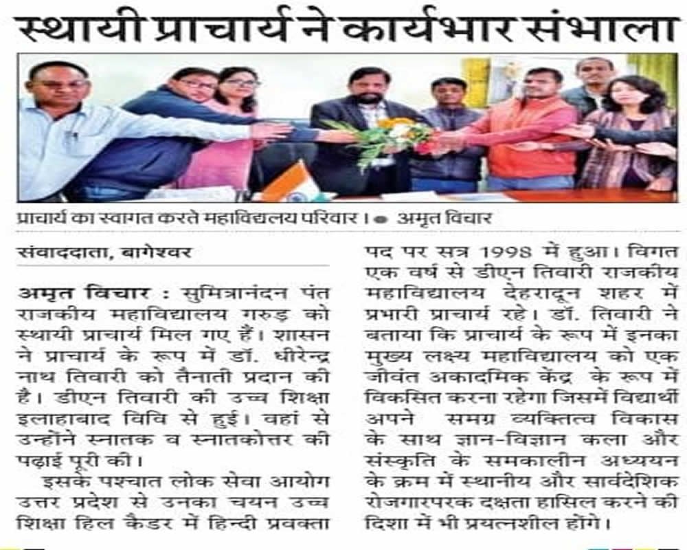 New Principal Takes Charge at Sumitra Nandan Pant Government Degree College, Garur